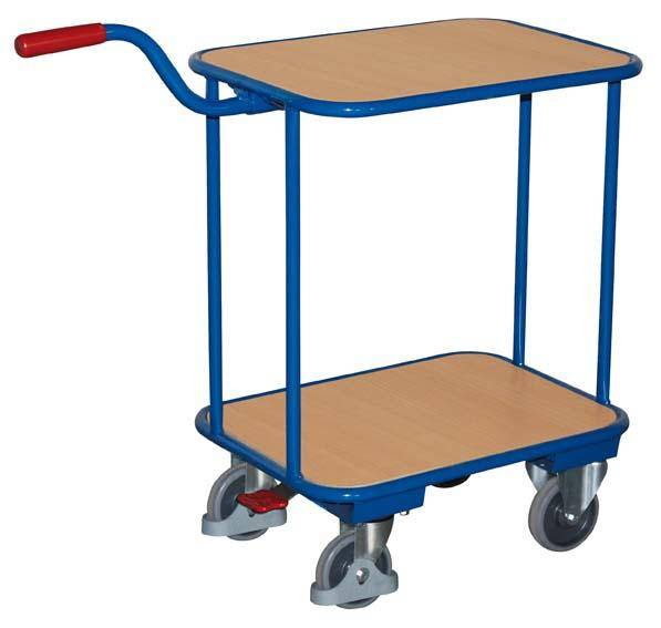 Griffroller mit 2 Holz-Ladeflächen Etagenhöhe 185/770 mm Dieses Gerät hat gemäß Norm serienmäßig Lenkrollen mit Radfeststeller und Fußschutz. Passende Eurokästen auf Anfrage lieferbar. | Mit 2 Holz-Ladeflächen Etagenhöhe 185/770 mm. | 2 Lenkrollen mit R