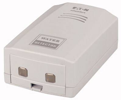 Der Wasser-Leckagensensor erkennt den Austritt von Flüssigkeiten und gibt einerseits einen akustischen Alarm aus, andererseits wird ein potentialfreier Relaiskontakt geschaltet. So lange eine Flüssigkeit erkannt wird, wird auch der Alarm ausgegeben. Das Sensorelement kann auch abgenommen werden und mittels Kabel unabhängig vom Auswertegerät montiert werden. Das Gerät ist mit einer 9 V Batterie (6LR61) versorgt. Um den Sensor in das Eaton-Funk-System einzubinden, muß der Relaiskontakt mit einem Binäreingang 2 x Signalkontakt (265627) im Mode 2 verbunden werden. Die Befestigung erfolgt mittels Schrauben oder Klebestreifen.