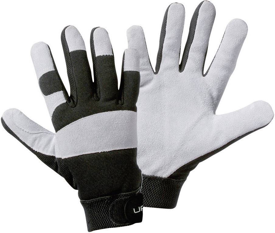 Rindspaltleder mit schwarzem, gepolsterten Elasthan-Handrücken für perfekte Passform · Atmungsaktiv · Flexibles Tragegefühl · Passgerechte Stulpe mit Klettverschluss · Ausgesuchte Lederqualität.