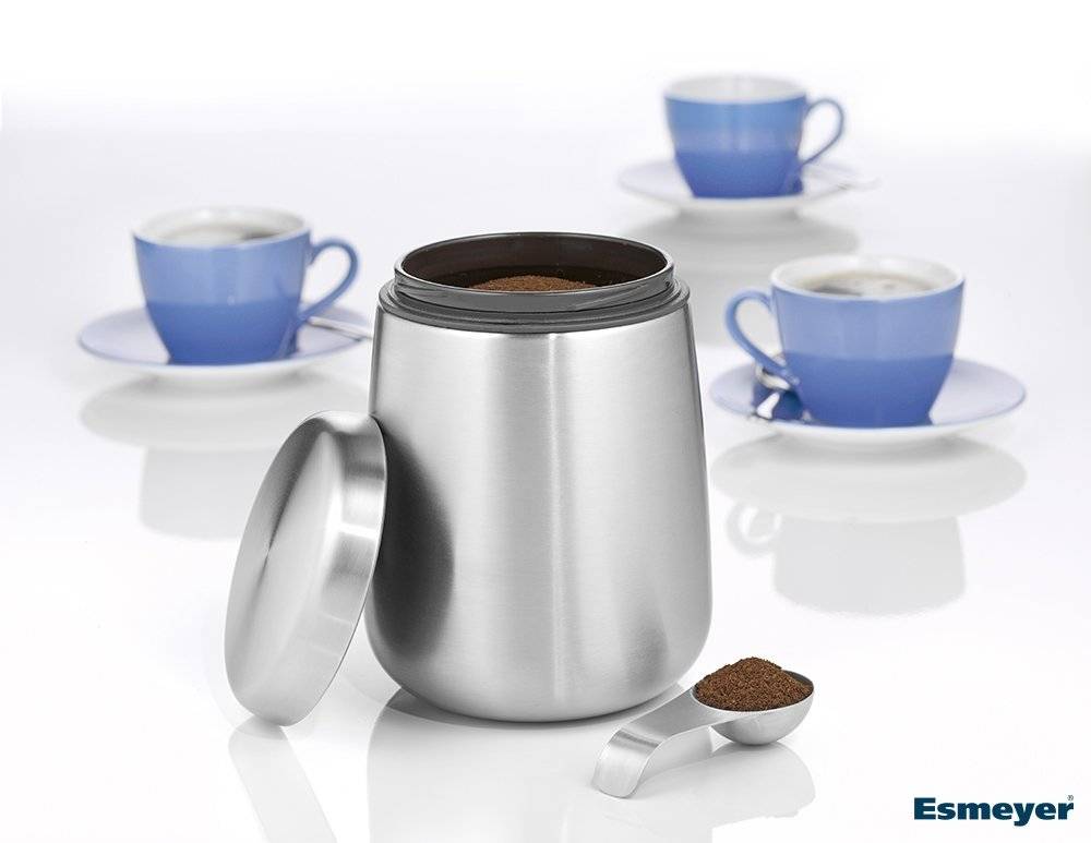 Luftdichte Vorratsdose AVIGNON, Inhalt 1,5 Liter aus Edelstahl 18/10, mattiert inkl. Portionierlöffel. Im Geschenkkarton.Maße: Höhe ca. 16,5 cm, Durchmesser ca. 11,5 cm Der Portionierlöffel kann im magnetischen Deckel befestigt werden. Länge des Löffels ca. 9,5 cm. Gewicht: 0,380 kg