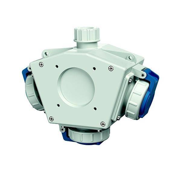 MENNEKES DELTA-BOX, blau/grau Schutzkontakt-3-FACH-Kupplung 16A2P+E DWD (10808/1932) Leitungseinfuehrung: 1X M 32X1,5 mit Verschraubung WAGO Verbindungsklemme 5-Leiter anschlussfertig verdrahtet mit innenliegender Zugentlastungsschelle