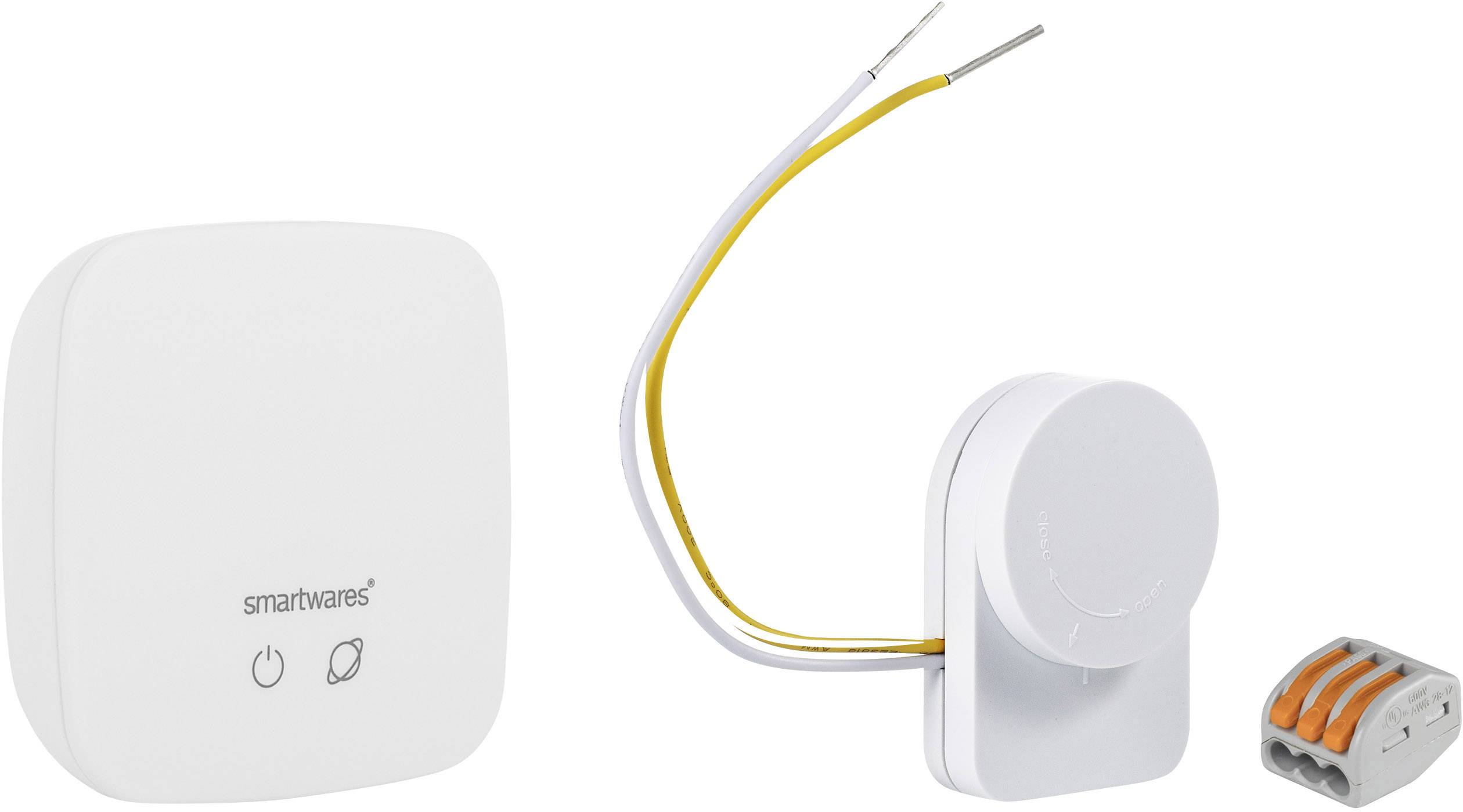 Konverter + WAGO Klemme + Batterie CR2450 + Link/Gateway + USB Kabel + USB Netzteil + Bedienungsanleitung.