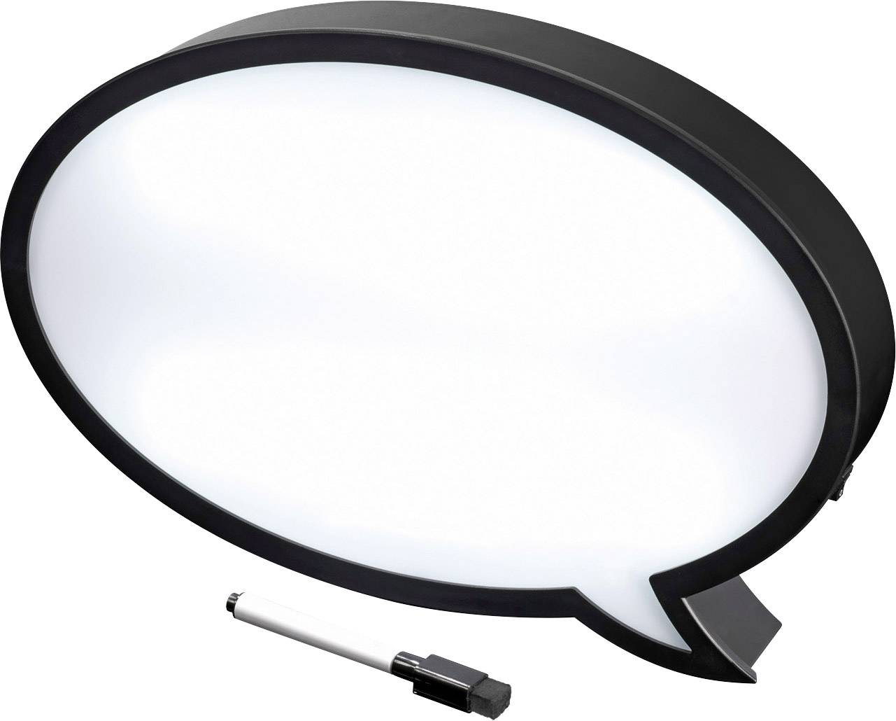 Die dekorativste Art, nette kleine Botschaften oder wichtige Notizen zu präsentieren: Diese witzige Sprechblase mit LED Beleuchtung ist ein toller Lichtblick für Ihr Zuhause oder das Büro. Sie wirkt bereits für sich schon sehr dekorativ und eignet sich darüber hinaus hervorragend als Memo-Board, mit dem Sie Ihre Pläne festhalten oder Nachrichten hinterlassen können! Der passende Stift, mit dem Sie nach Herzenslust Nachrichten schreiben können, ist im Lieferumfang enthalten - Sie können also direkt loslegen! Mit dem ebenfalls beiliegenden weichen Schwamm ist im Nu alles wieder weggewischt. Betrieben wird die EASYmaxx LED Sprechblase mit einem langlebigen LED Leuchtmittel.