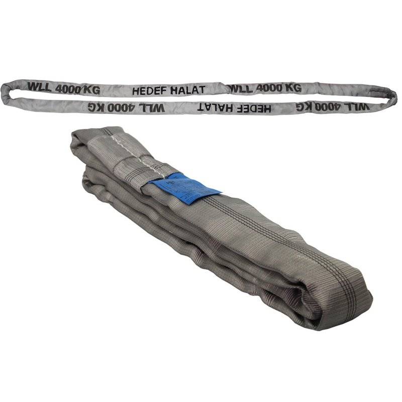 Rundschlinge 4000kg Tragkraft, 4m Umfang, endlos mit Polyesterkern, Hebegurt Hebeband, Grau