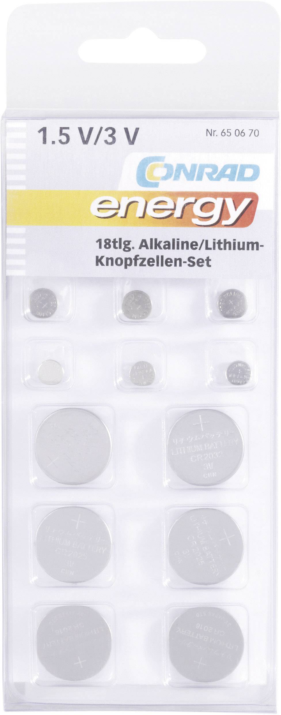 je 3x AG 1, AG 3, AG 4, AG 13 sowie je 2x CR2016, CR2025, CR2032