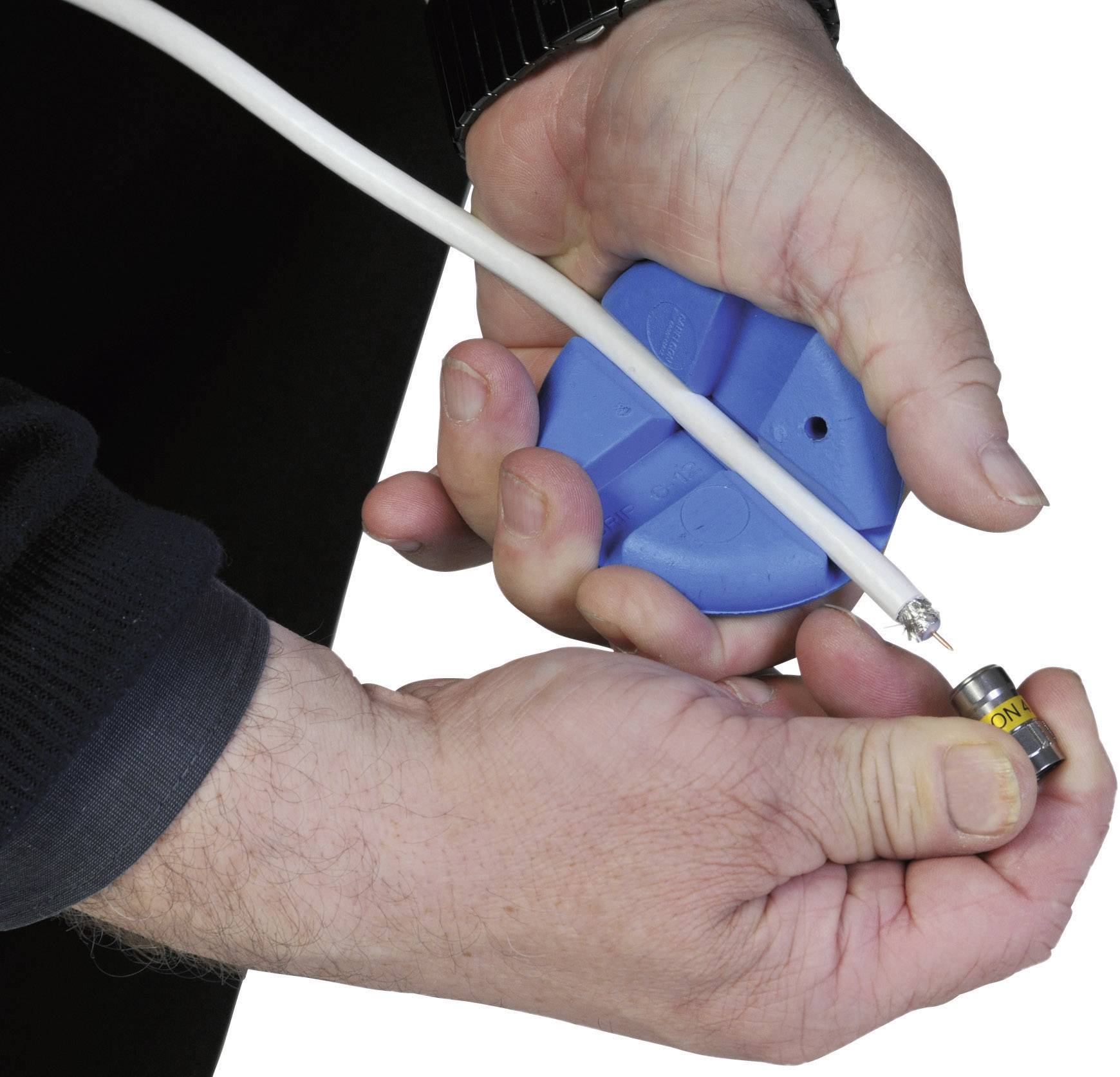 Mit dieser Festhaltehilfe wird Ihnen kein Kabel mehr aus der Hand rutschen, oder sich beim Anbringen von F-Steckern mitdrehen. Einfach das Kabel in eine der vorgefertigten Kerben legen und zudrücken.