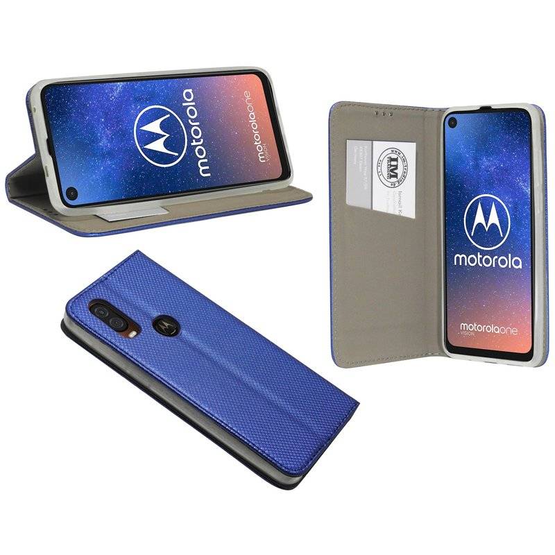 Elegante PU-Leder Buch-Tasche für das Motorola One Vision mit EC-/ Kreditkarten Fächer und integrierter Standfunktion