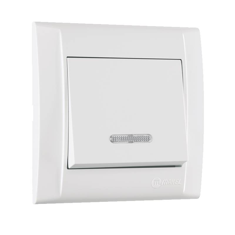 Defne Aus-/Wechselschalter mit Beleuchtungsfenster + Rahmen, VDE Zertifiziert, Unterputz mit Steckklemme, in weiß