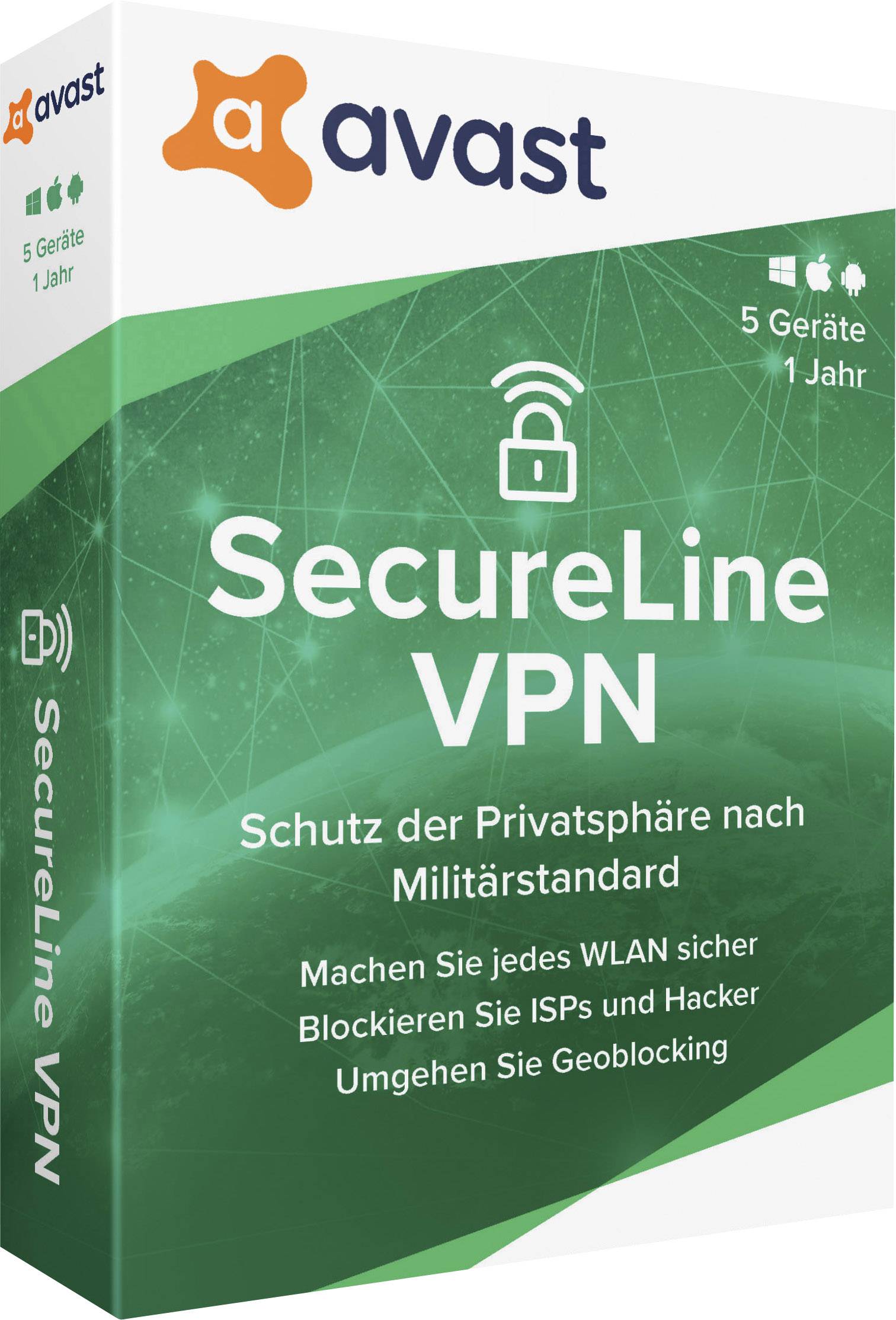 Avast SecureLine VPN - 2020 (Multi-Device) Vollversion, 5 Lizenzen Windows, Mac, Android, iOS Sicherheits-Software