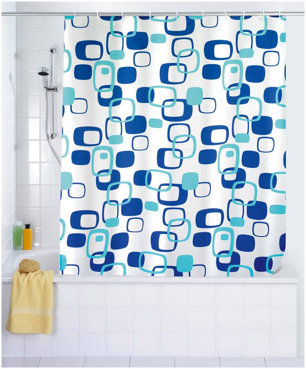 Wenko 19179100 Geometrix Duschvorhang Polyester Weiß, Blau 1St.