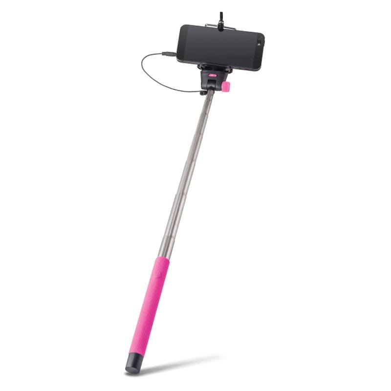 Universal Selfie Stick Stange Pink mit SpieKabelgebunden (ohne Bluetooth) ca.100 cm lang