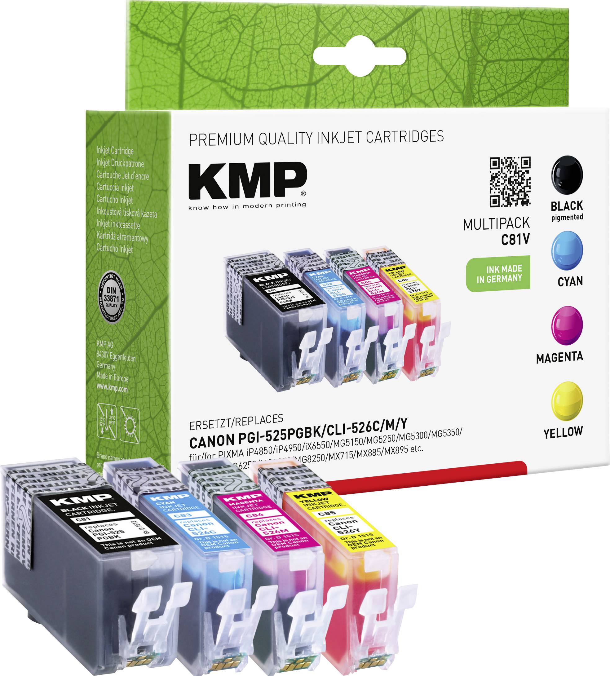 KMP Druckerpatrone ersetzt Canon PGI-525PGBK, CLI-526C, CLI-526M, CLI-526Y Kompatibel Kombi-Pack Schwarz, Cyan, Magenta, Gelb C81V 1513,0050