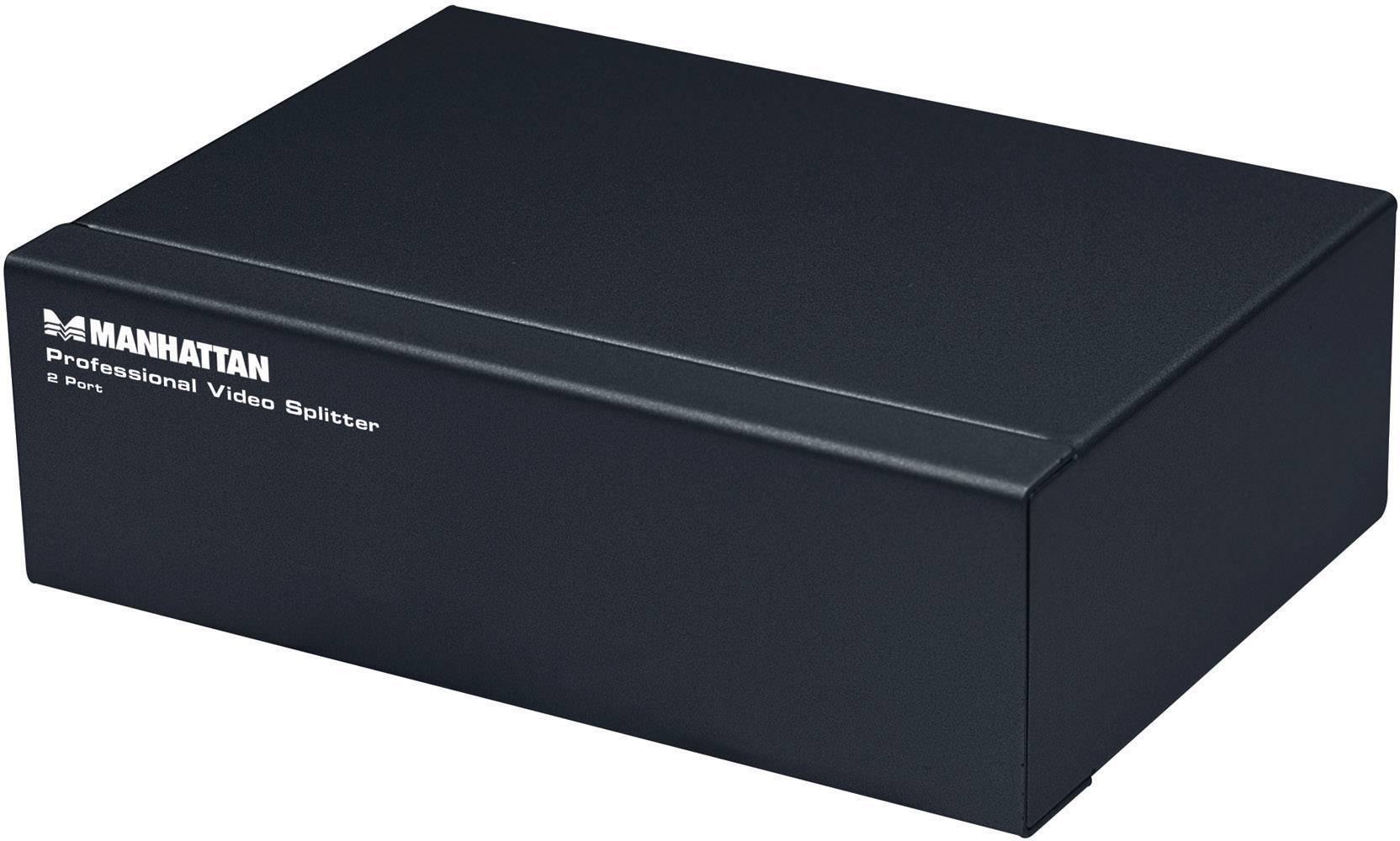 Der Professionelle Video Splitter von Manhattan mit eingebautem Verstärker verteilt ein einzelnes VGA Signal von einem Computer, oder einem anderen Gerät mit VGA-Ausgang, auf bis zu zwei Displays. Damit eignet sich perfekt für Messeauftritte, Klassenräume, Videokonferenzen, Vorführungen und Präsentationen in Ladengeschäften. Das Gerät ist bis zu dreifach kaskadierbar und ermöglicht so eine Verteilung auf eine Vielzahl von Displays. Die vergoldeten Kontakte und das vollständig geschirmte Metallgehäuse sorgen dabei für eine zuverlässige Signalübertragung ohne Qualitätsverlust.