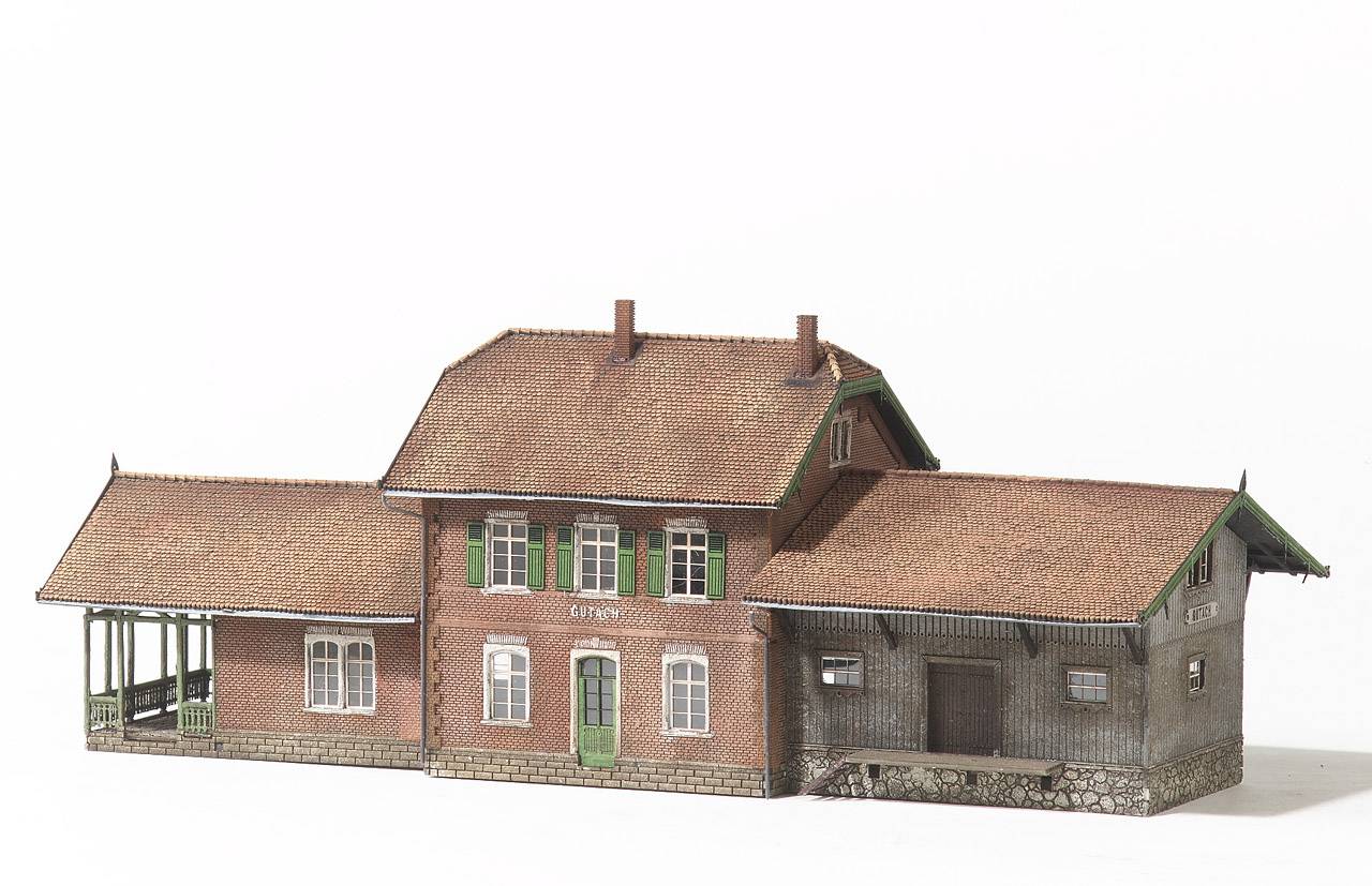 Bahnhof Gutach Schwarzwald um 1930, 2mm-Karton, Holz, laser-graviert und -geschnitten, der Bausatz muss individuell bemalt werden.