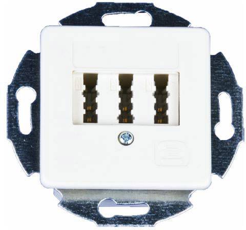 Anschlussdose – TAE 3x6 NFN UP 3x6polig mit Zentralplatte 50x50mm für Unterputz- Installation mit Tragring + Spreizkrallen, Schraubklemmen