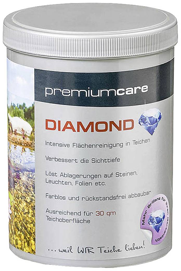 premiumcare DIAMOND nur bei pH-Wert kleiner 8,5 und Karbonathärte (KH) größer 5 °dH anwenden. premiumcare DIAMOND gezielt in den Teich streuen (30 bis 50 g pro m² Teichoberfläche). Kontakt mit Wasserpflanzen meiden.