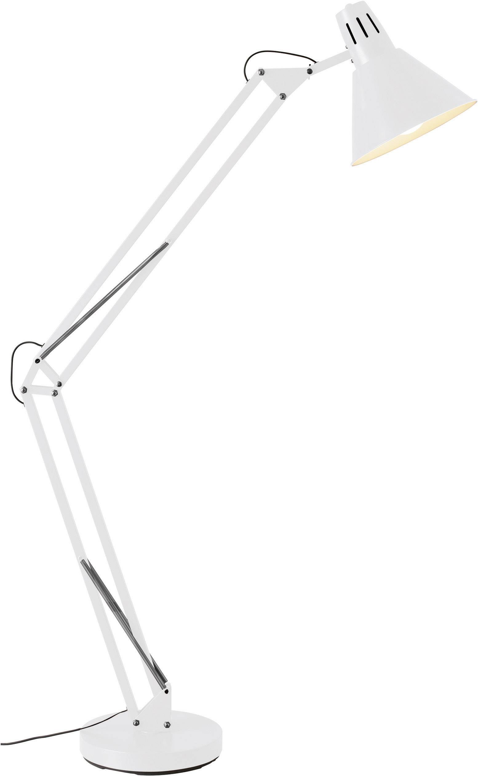 Optimal neben oder hinter einer Couch eignet sich die Leuchte Winston als Lesebeleuchtung. Nicht nur praktisch, auch für dekorative Zwecke geeignet kann die Leseleuchte auch zur gemütlichen Hintergrundbeleuchtung eingesetzt werden. In der Optik einer XXL-Tischleuchte wurde die Winston Stehleuchte als faszinierender Blickfang für Ihr Zuhause entworfen. Die schlichte Farbgebung passt in jede Wohnsituation und trägt zu einem stilsicheren Raumambiente bei. Mit 1,8 Metern in der Höhe ist sie nicht zu übersehen. Der auszuleuchtende Bereich kann durch den Kopf und die Gelenke spezifisch eingestellt werden. Das Zuleitungskabel ist ungefähr 1,8 Meter lang.Die Leuchte eignet sich für den Einsatz von Normallampen. Leuchtmittel sind im Lieferumfang nicht enthalten. Auch energiesparende LED-Leuchtmittel können eingesetzt werden. Komfortabel geschaltet werden kann die Leseleuchte mit dem Fußschalter.