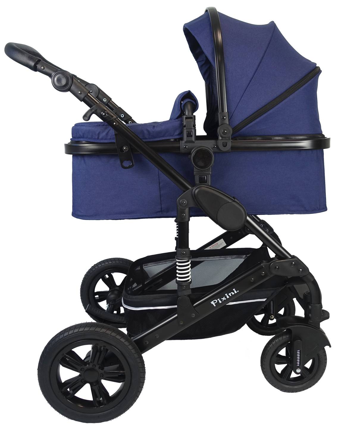 Mit dem Pixini Kombi-Kinderwagen California Luxe erwerben Sie einen gut gefederten, kompakten, innovativen und ergonomischen Kombi-Kinderwagen. Der Kinderwagen ist mit der enthaltenen Babywanne von Geburt an nutzbar und lässt sich später mit wenigen Handgriffen dank Sportsitz zum Sportwagen bzw. Buggy umbauen. Der Aufsatz wird ganz einfach durch ein Klicksystem auf dem Kinderwagengestell befestigt. Damit Sie Ihr Kind in den ersten Monaten immer im Blick haben, kann die Wanne sowie der Sportsitz in beide Richtungen umgesetzt werden. So kann Ihr Kind später nach vorne schauen oder anfangs zu Ihnen hin. Die Rückenlehne ist mehrfach bis in die Liegeposition verstellbar. Auch das XXL - Sonnenverdeck ist mehrfach verstellbar, damit Ihr Kind gut vor Sonnen und Blicken geschützt ist. Das XXL-Verdeck enthält zudem ein einklappbares Sonnenschild und ist belüftet, damit es auch bei sommerlichen Temperaturen keinen Hitzestau gibt. Der Kinderwagen verfügt zudem über eine Komfort-Fußbremse an der Hinterachse damit Sie beim feststellen sowie lösen der Bremse Ihre Schuhe nicht schmutzig machen. Unebenheiten auf unbefestigtem Untergrund werden dank der Federung abgefangen und erhöhen den Fahrkomfort für ihr Baby und Kind deutlich. Durch die Outdoor-Räder und die optional feststellbaren, gefederten Vorderräder wird jede Fahrt mit dem Kinderwagen zu einem komfortablen und angenehmen Erlebnis – egal ob auf Waldwegen oder in der Stadt. Dank dem 12-fach höhenverstellbaren Schieber mit hochwertig handgenähten Kunstleder-Griff ist der Kinderwagen individuell auf Ihre Größe einstellbar, damit der Ausflug auch für Sie als Elternteil so komfortabel wie möglich wird. Der Bauchbügel bzw. Schutzbügel ist von beiden Seiten abnehmbar und erleichtert so das Ein- und Aussteigen des Kindes in den Sportwagen. Die 4 hochwertigen Räder sind Luftkammergefüllt und mit einem Geländegängigen Profil ausgestattet – platte Reifen gehören somit der Vergangenheit an. Die Vorderräder sind schwenk- und feststellbar und natürlich gefedert. Der Kinderwagen kann einfach und kompakt zusammengeklappt werden. Mit der Babyschale kann der Kinderwagen auch als Travel-Set genutzt werden. Die Adapter zum befestigen am Kinderwagengestell sind im Set enthalten.