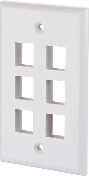 Keystone Universal-Datenanschlussdose 6 Port RJ45, zur Aufnahme von sechs Einzelmodul in Keystone Bauform. Die Dose ist im US-Style ausgeführt und hat ein Maß von 70 x 115 mm.