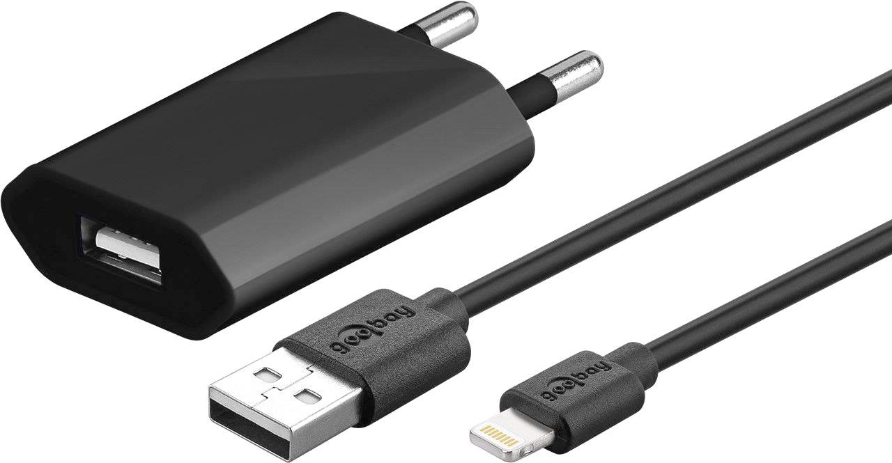 Goobay flach1A Lightning USB Ladegerät 5 W USB 2.0 Buchse A, Apple Lightning-Stecker Schwarz Steckdose
