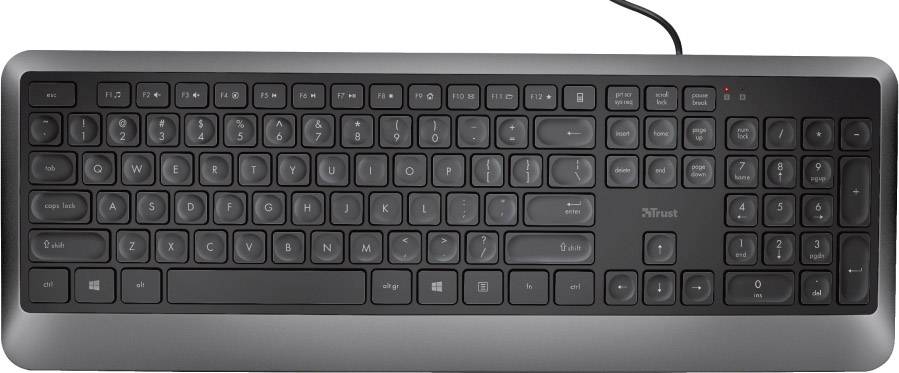 Trust EROU SILENT USB Tastatur Deutsch, QWERTZ, Windows® Schwarz, Grau