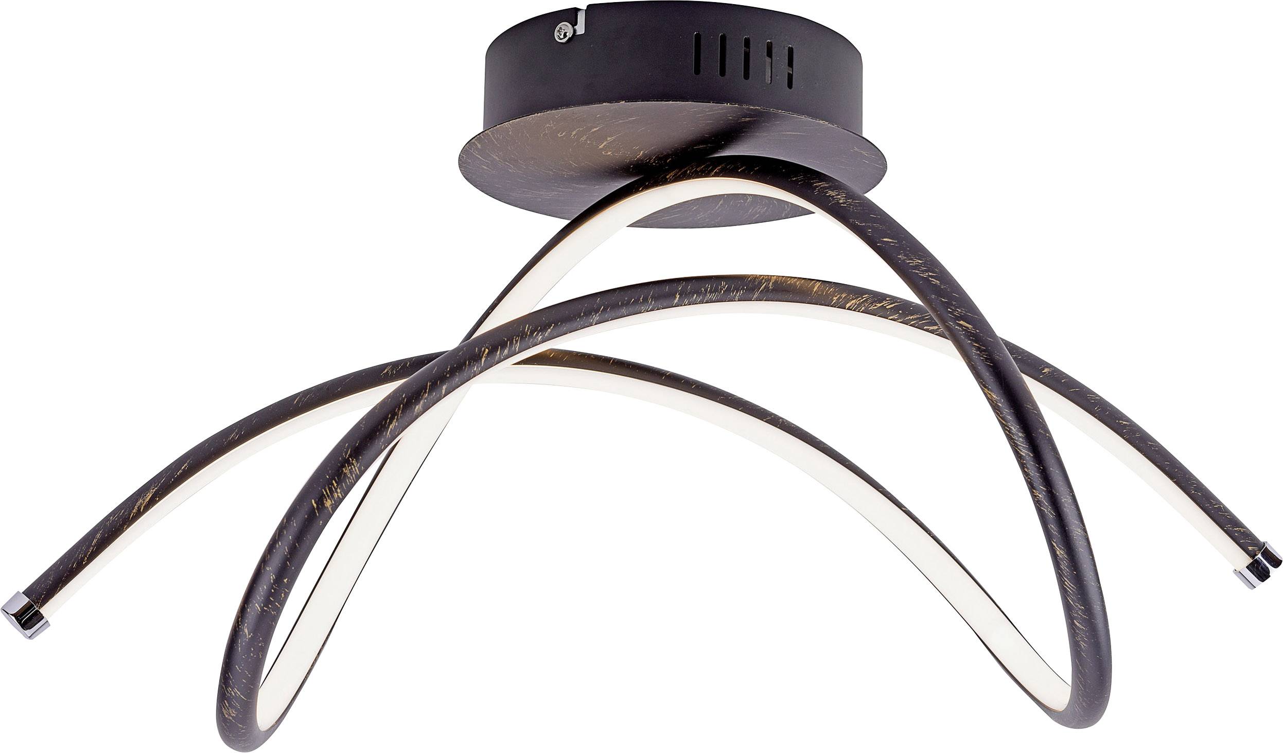 Die Deckenleuchte VIOLETTA überzeugt mit einer besonderen Form. Die geschwungene aus Stahl gefertigte Deckenleuchte in der Farbe Rost wird inklusive einem festverbauten 26,0 Watt LED-Leuchtmittel geliefert. Das Leuchtmittel strahlt gemessen am LED-Board rund 3250 Lumen aus und wirkt mit einer Farbtemperatur von 3000 Kelvin angenehm warmweiß. Das gemessene Gesamtlumen der Leuchte beträgt 2200 Lumen. Die Leuchte hat eine Länge von 53,0 cm, eine Breite von 23,0 cm und eine Abhängung von 28,0 cm.