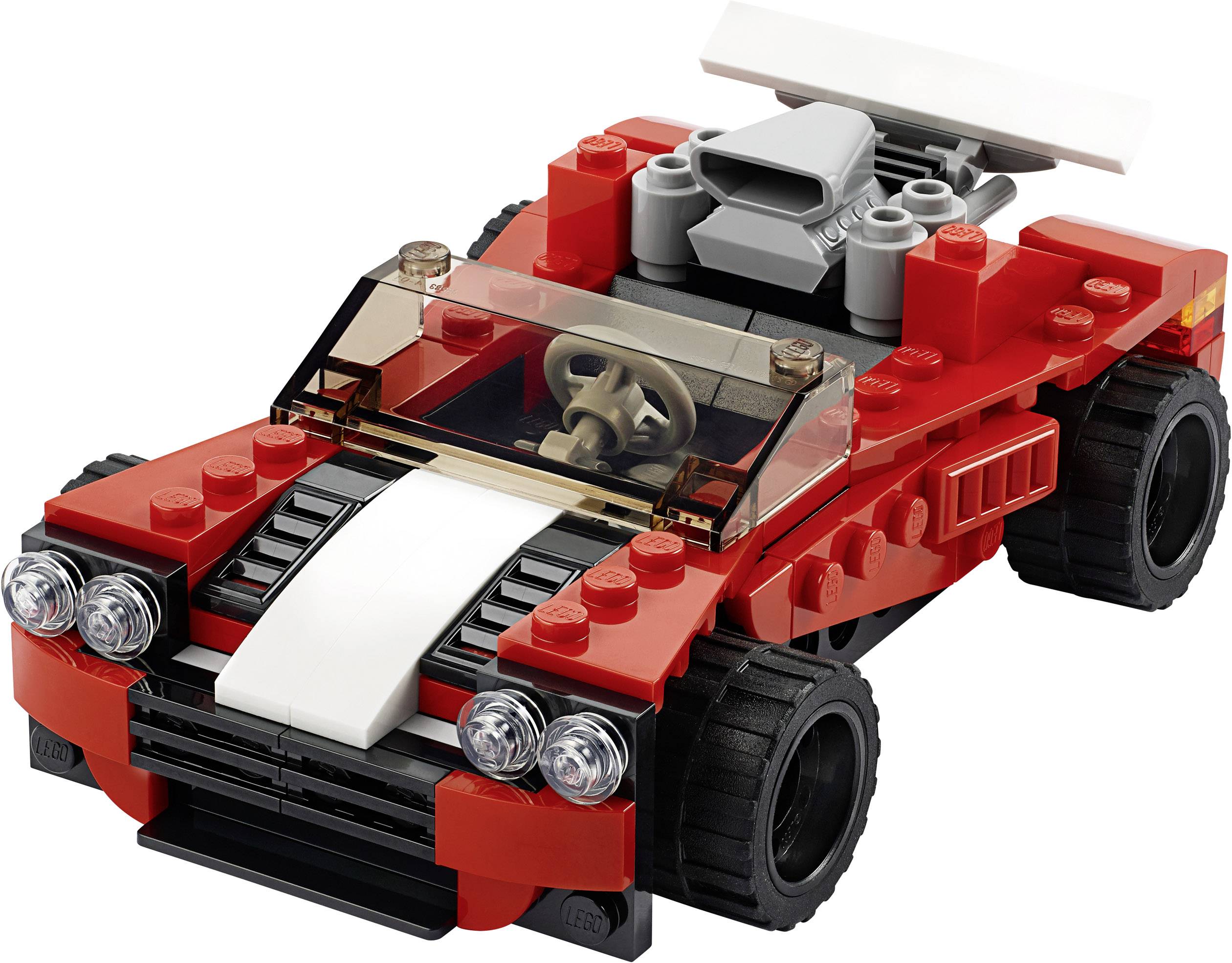 Das faszinierende LEGO® Creator 3-in-1-Spielzeugset „Sportwagen“ (31100) spricht Kinder an, die rasante Flitzer und kreatives Spielzeug mögen. Kinder lieben es, mit diesem rot-schwarzen Sportwagen mit Mittelmotor, Ansaugrohr und Heckspoiler herumzuflitzen. Spielspaß und kreative Freiheit beim Bauen Dieses LEGO Creator 3-in-1-Set bietet Kindern drei verschiedene Bau- und Spielerlebnisse. Sie können einen Sportwagen bauen und anschließend in einen Hot Rod mit Motor und Ansaugrohr oder in einen historischen Flieger verwandeln –oder etwas völlig Neues entstehen lassen. Dieses tolle Bauspielzeug inspiriert zu fantasievollen Spielerlebnissen und eignet sich wunderbar als Belohnung. Sowohl im Sportwagen als auch im Hot Rod findet eine Minifigur Platz. Eigenständige Modelle zum Bauen, Spielen und Umbauen. LEGO Creator 3-in-1 Sets enthalten detailreiche und realistische Modelle, die Kinder zu einem fantasievollen Spielerlebnis inspirieren. Die Modelle eröffnen unzählige Bau- und Spieloptionen und sprechen die kreative Seite von Kindern jeden Alters an. Diese kleinen inspirierenden Sets sind auch tolle Geschenke für jeden Anlass.