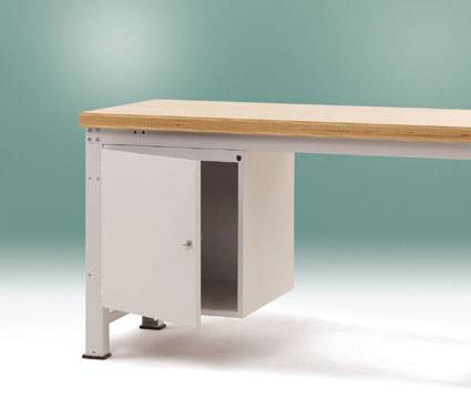 Gehäuseunterbau mit Tür für alle Werkbanktische PROFI - zur Unterbringung von Werkzeugen oder Kleinmaterialien direkt am Arbeitsplatz. Die 50 mm Lochrasterung dient zur Aufnahme von festen Einlegeböden und Ausziehböden. Der Gehäuseunterbau ist mit einem Zylinderschloss und 2 Schlüsseln ausgestattet. Die Türe ist rechts angeschlagen. Die Tragkraft der Gehäuseunterbauten mit Tür beträgt 200 kg . Der Gehäuseunterbau mit Tür hat eine Breite von 500, eine Tiefe von 580 und eine Höhe von 560 mm. Er ist aus Stahlblech gefertigt und in Lichtgrau RAL 7035 / Brillantblau RAL 5007 hochwertig pulverbeschichtet. Außerdem können Sie den Gehäuseunterbau mit einem Einlegeboden, Artikelnummer ZB2181 oder einem Ausziehboden, Artikelnummer ZB2186, ergänzen. Gehäuse mit einer Nutzhöhe von 500 mm können bei PROFI Ergo Werkbänken nicht verwendet werden.