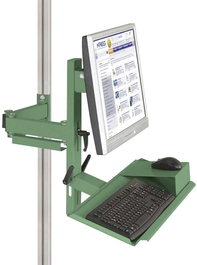 Die fortschreitende Entwicklung in der Elektronik tendiert zu immer kleineren Komponenten. Mit der ständig verkleinerten Größe diverser Bauteile werden auch die mikroskopisch kleinen Abstände zwischen den Isolatoren und Schaltungen innerhalb der Bauteile immer geringer, so dass geeignete Statikschutzmaßnahmen erforderlich werden. Winzige statische Entladungen sind für den einzelnen Menschen nicht spürbar, aber dennoch schädlich für elektronische Bauelemente und Komponenten. Erschwerend kommt hinzu, dass der entstandene Schaden, der durch die elektrostatische Ladung entsteht, mit dem bloßen Auge nicht zu erkennen ist. Elektrostatisch geschützte Bereiche und ESD-Einzelarbeitsplätze sind fast in der gesamten Elektronik- und Halbleiterfertigung erforderlich. Mit unseren ESD-Arbeitsplatzsystemen helfen wir Ihnen die elektrostatische Entladung zu vermeiden und Ihre Bauteile zu schützen. Verlieren Sie keine Zeit mit der Suche nach Informationen! Durch den ESD-Monitorträger sind Ihre Dokumente direkt am Arbeitsplatz sichtbar. Weiterhin kann durch die elektronische Fertigungsrückmeldung wertvolle Zeit eingespart werden. Der Ergonomie ESD-Monitorträger mit einem VESA Anschlussadapter von 100 mm dient zur Befestigung von Flachbildschirmen direkt am Arbeitsplatz. Das Trägersystem lässt sich an 3 verschiedenen Stellen, unterschiedlichen Körpergrößen entsprechend ergonomisch anpassen. Mit dem Ergonomischen Monitorträger schützen Sie die Gesundheit Ihrer Arbeitnehmer und verringern so Krankheitstage und Fehlzeiten. Das komplette Trägersystem lässt sich in einem Bereich von 81 mm verschieben, der Ergo-Monitorträger im Bereich von 56.3 mm und der Tastaturträger um 81 mm. Das Trägersystem hat eine Ausladung von 500 mm und eine Gesamthöhe von 595 mm. Der Monitorträger verfügt über eine Tastaturträgerplatte mit einer Breite von 690 mm und einer Tiefe von 250 mm. Außerdem enthält die Lieferung eine Mausfläche. Unterhalb der Trägerrohre sind Kabelführungskanäle integriert, die für einen sauberen und aufgeräumten Arbeitsplatz sorgen. Die Tragkraft des Monitorträgers beträgt 20 kg. Er ist aus Stahl gefertigt und in Resedagrün RAL 6011 hochwertig pulverbeschichtet.