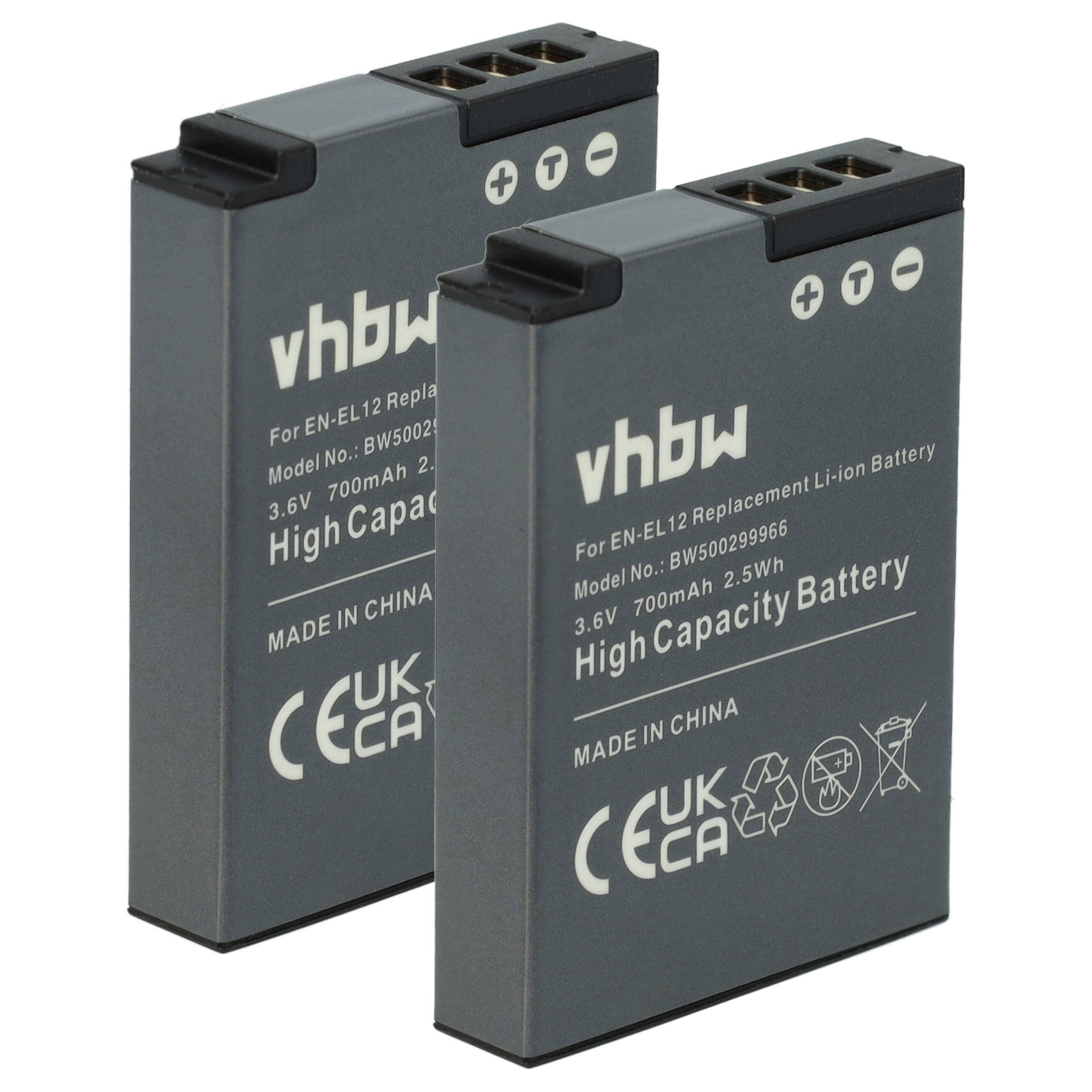 2 x Ersatzakku für Videokamera, Digitalkamera Nikon CoolPix A1000, B600 | Ersetzt: Nikon EN-EL12 | Technologie: Li-Ion. | Kapazität: 700mAh (3.6V / 2.52Wh). | Aus dem Hause vhbw.