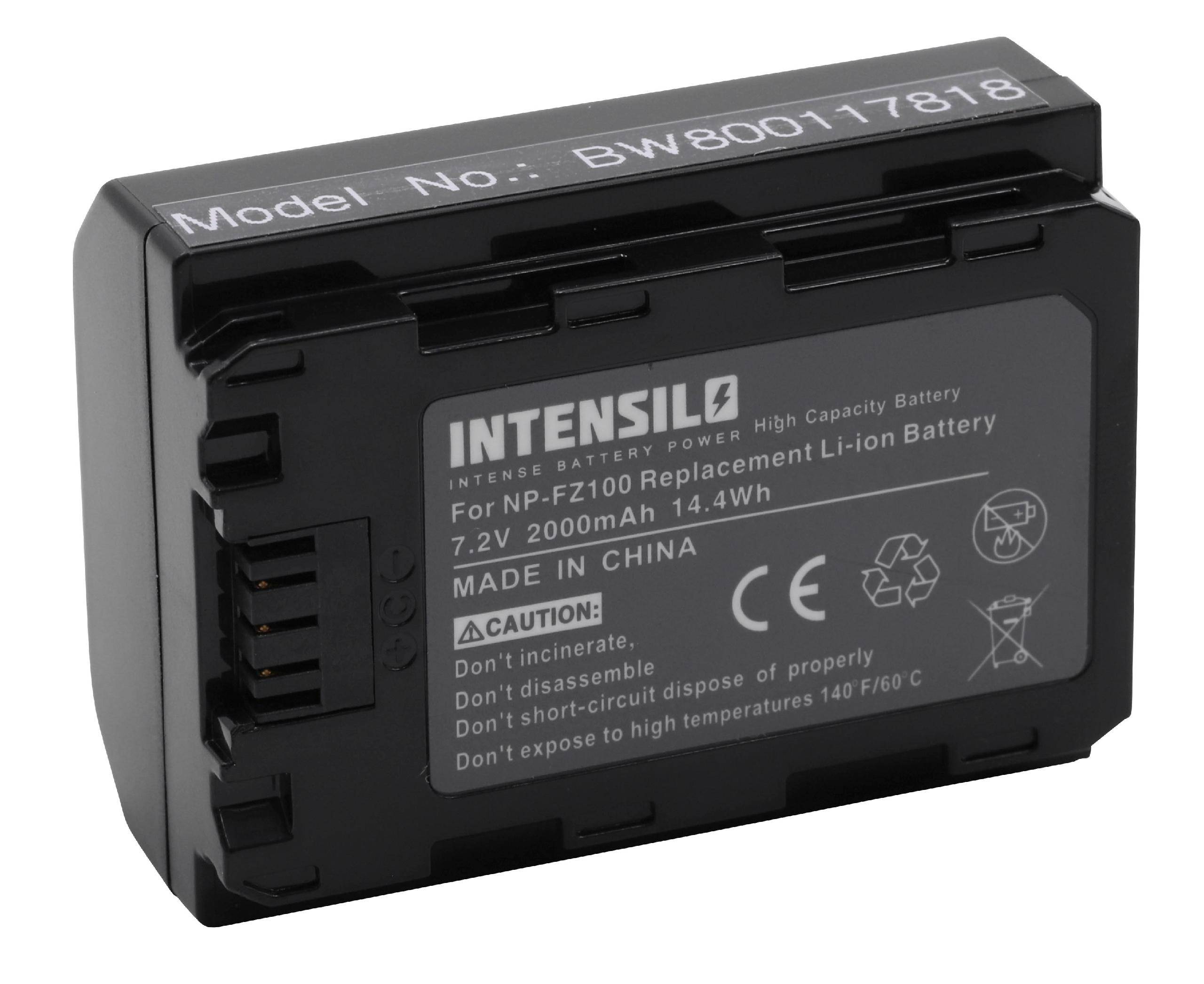 Leistungsfähiger Austausch-Akku für Digitalkamera, Spiegelreflexkamera | Wiederaufladbar | Jede Akku-Zelle wird geprüft | Ersatz für Sony NP-FZ100 Akku | Kompatibler Hochleistungsakku | Kapazität: 2000 mAh | Spannung: 7,2 Volt | Nennenergie: 14,4 Wh | Zell-Typ: Li-Polymer | Selbstverständlich Einhaltung gesetzlicher Normen | CE & RoHs | Kurzschluss-, Überhitzungs- & Überspannungsschutz | Lieferumfang: 1x Ersatzakku (rechargeable) | Ersatzteile, Wechselakkus & Zubehör der Marke INTENSILO