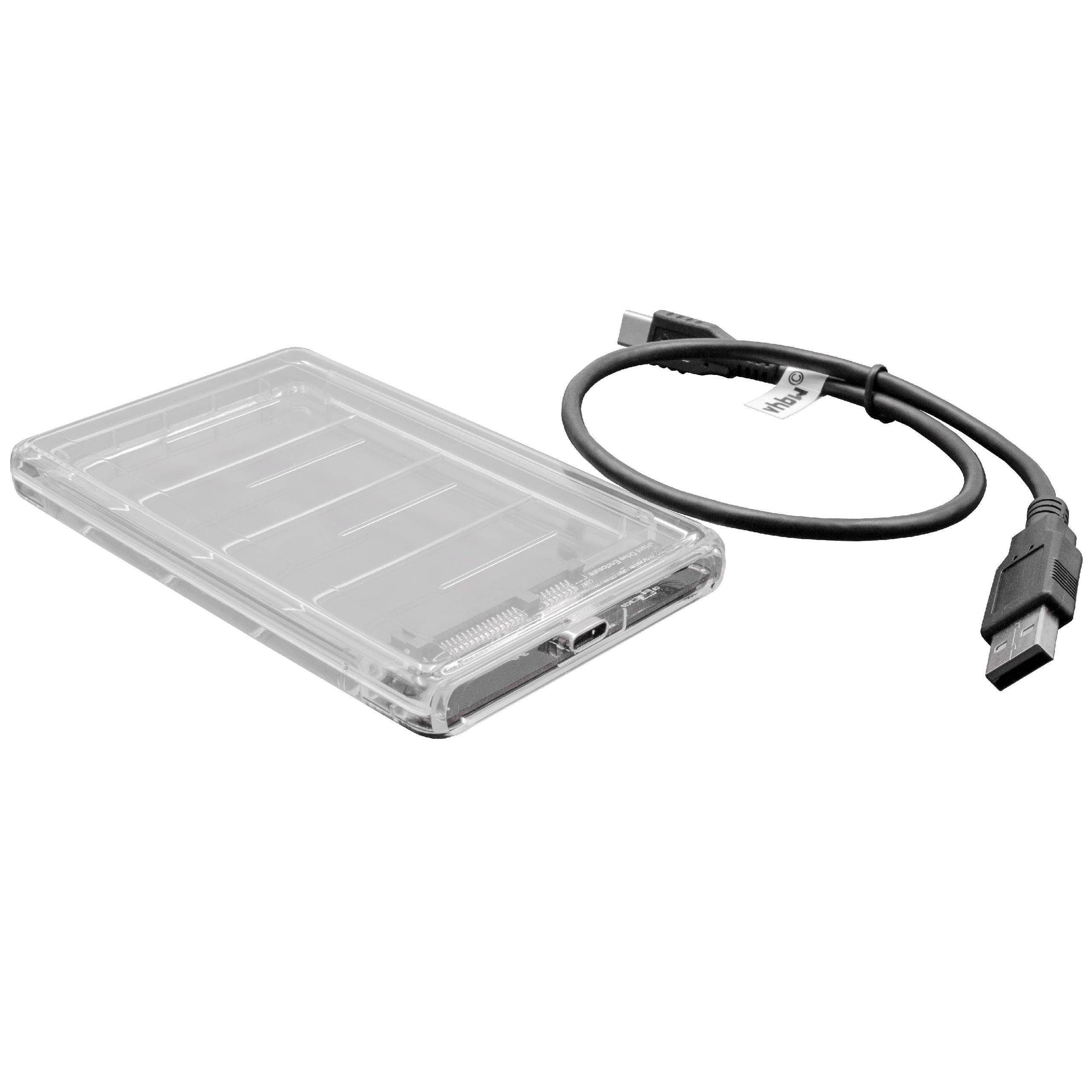 Passgenaues SATA III 22 (7 + 15) Pin Kabel für Ihre Festplatte! - Anschlüsse: SATA III 22 Pin Buchse, USB-3.1-Typ-C-Buchse Mit diesem Kabel können Sie ganz einfach Festplatten mit SATA Anschluss an den USB Port des Computers anschließen. Dies ist besonders praktisch zur Datensicherung oder Datenübertragung. Übernehmen Sie ganz bequem Daten von Ihrem alten Computer auf den neuen Rechner oder transportieren Sie große Datenmengen. Die präzise gefertigten Stecker ermöglichen zuverlässige Datenübertragung. Das Kabel hat eine praktische LED-Aktivitätsanzeige. So sehen Sie auf einen Blick, ob das Kabel aktiv ist. Mit dem stabilen, eleganten Gehäuse können Sie SATA-Festplattenlaufwerke bis 9,5mm ganz einfach in praktische externe Festplatten verwandeln. Nehmen Sie Ihre Daten gut geschützt überall mit, egal wo Sie hingehen. Hoher Datendurchsatz durch schnelles UASP (USB Attached SCSI Protocol). Einwandfreie Neuware in Originalverpackung. Hochwertiges Zubehör aus dem Hause vhbw. Lieferumfang: - 1 x Anschlusskabel - 1 x Festplattengehäuse Technische Daten: - Anschluss A: SATA III 22 (7 + 15) Pin Buchse - Anschluss B: USB-3.1-Typ-C-Buchse - abwärtskompatibel zu SATA I und SATA II - abwärtskompatibel zu USB 1.1 und 2.0 - Farbe: schwarz / transparent - Länge: 40.5cm - Mit LED-Aktivitätsanzeige - Unterstuetzt 2 TB 2.5-Zoll-Festplattentreiber - USB Typ C unterstützt Power Delivery bis zu 4,5 W - Unterstützte Betriebssysteme: Mac OS X 10.6, Windows XP/ 7/ 8/ 8.1/ 10 oder höher Passend für folgende Festplatten: 2'5" HDD / SSD 9,5mm Festplatten