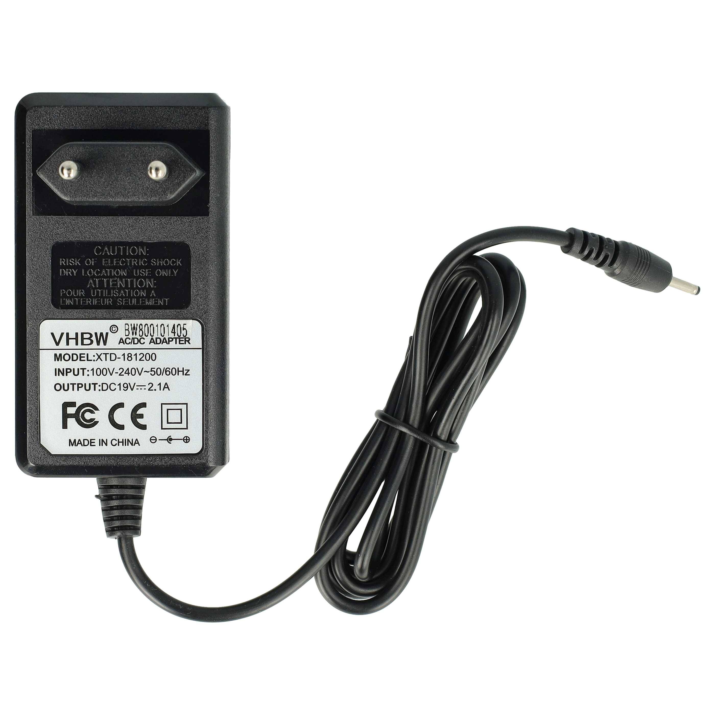 vhbw 220V Netzteil Ladegerät (20V, 2A) kompatibel mit Asus Eee PC 1005PR, 1008, 1008HA, 1008P, 1011B, 1011BX, 1011C, 1011CX Notebook, Laptop