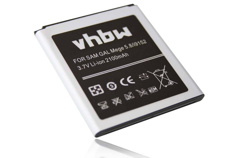 vhbw Akku kompatibel mit Samsung Galaxy Mega 5.8, Galaxy Mega Duos, GT-I9150, GT-I9152, GT-i9158, SCH-P709 Handy Smartphone Telefon (2100 mAh, 3,7
