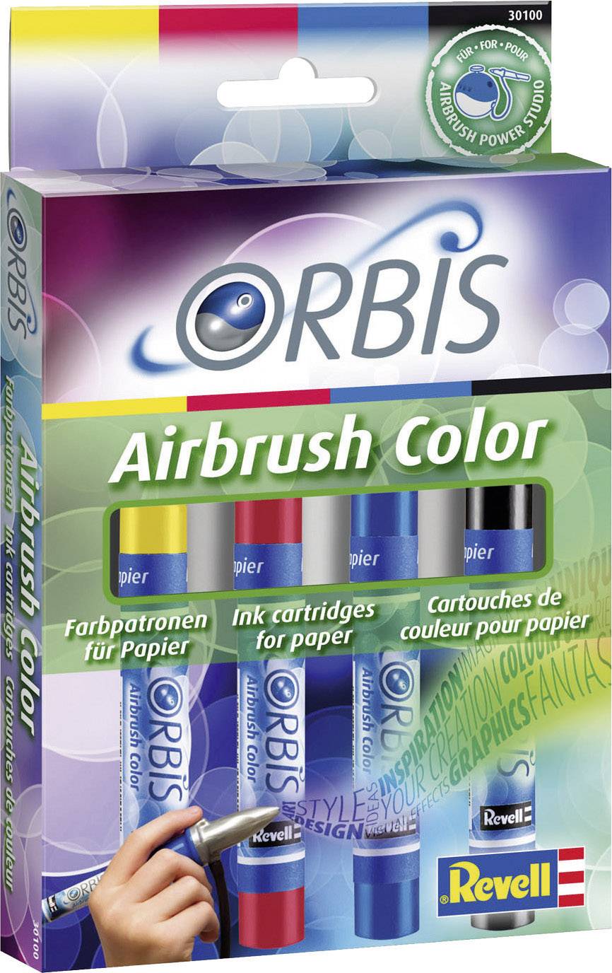 Orbis Airbrush Airbrush-Acrylfarbe Rot, Gelb, Blau, Schwarz Patronen 1 Set