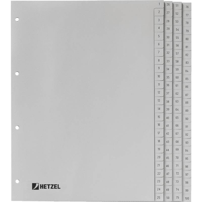 HETZEL Kunststoffregister Zahlen/721311 A4 grau Polypropylen 1-100