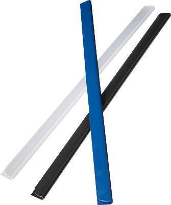 Klemmschienen aus Kunststoff. Vielseitig einsetzbares Bindessystem für ungelochtes Schriftgut. Füllhöhe: 3mm. Verpackt im SB-Beutel.