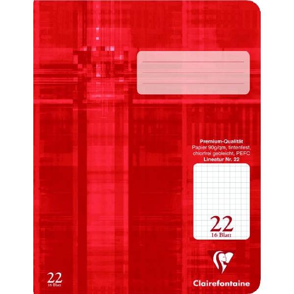 Lin. 22, kariert 5/5mm ohne Rand. Besonders robuster Einband; Zweifarbig, flexibel mit abwischbarer Zellophanfolie kaschiert.Clairefontaine die NR. 1 in Papier. "Velin" d.h. satiniertes Papier, schneeweiß, holzfrei, 90g/ qm. Spezielle Glättung des Papieres für eine besonders angenehme und leichte Schriftführung. Format DIN A4 - 16 Blatt.