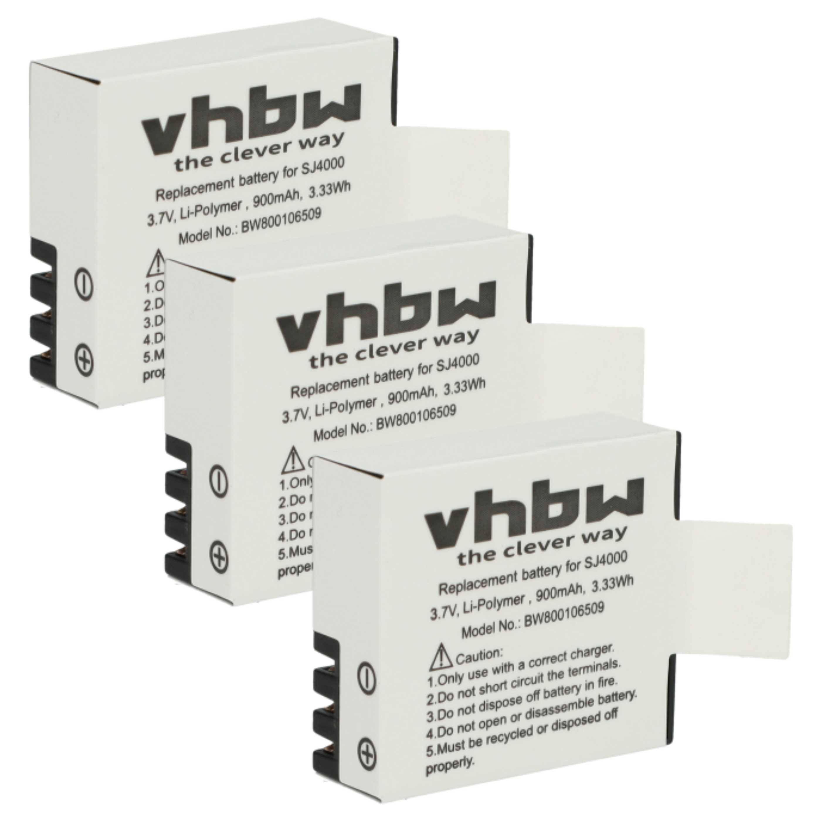 Leistungsfähige Austausch-Akkus für Ihre Videokamera | Wiederaufladbar | Jede Akku-Zelle wird geprüft | Ersatz für SJ4000B Akku in Ihrer Videokamera | Kompatibler Hochleistungsakku | Kapazität: 900 mAh | Spannung: 3,7 Volt | Nennenergie: 3,3 Wh | Zell-Typ: Lithium-Ion | Selbstverständlich Einhaltung gesetzlicher Normen und Standards | Hochwertig verarbeitet | Langlebig im Einsatz | Lieferumfang: 3x Akku | Ersatzteile, Wechselakkus & Zubehör von vhbw