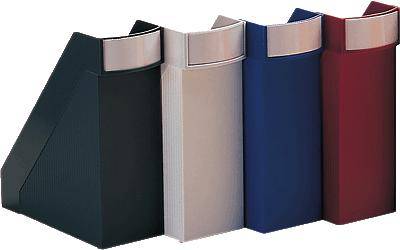 Stehsammler extra breit für Prospekte, Zeitschriften, Kataloge, vorn mit Griffmulde, Etikett und Schriftfeldabdeckung, mit Führung für Trennwände, in Streifenstruktur. HxBxT 290x102x271mm.