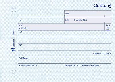 Die Quittung 300 von AVERY ZWECKFORM im DIN A6 Querformat ist mit einem feinen, netzartigen Sicherheitsdruck ausgestattet. Somit ist die Quittung garantiert fälschungssicher. Das Quittungsbuch beinhaltet 50 vorgedruckte weiße Quittungsvorlagen inkl. MwSt und 1 Blatt Blaupapier. Die Quittungen und Vordrucke von Avery Zweckform sind zuverlässige, bewährte Hilfen für Ihre Warenwirtschaft, Buchhaltung und Steuer. Die Formulare werden regelmäßig von Rechtsexperten geprüft.