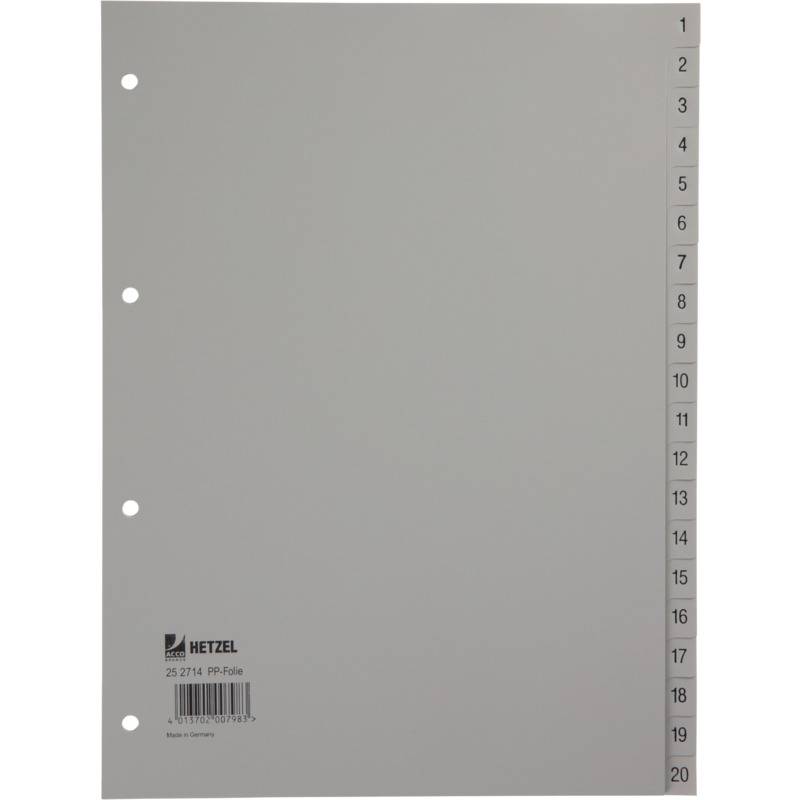 HETZEL Kunststoffregister Zahlen/25271481 A4 grau Polypropylen 1-20