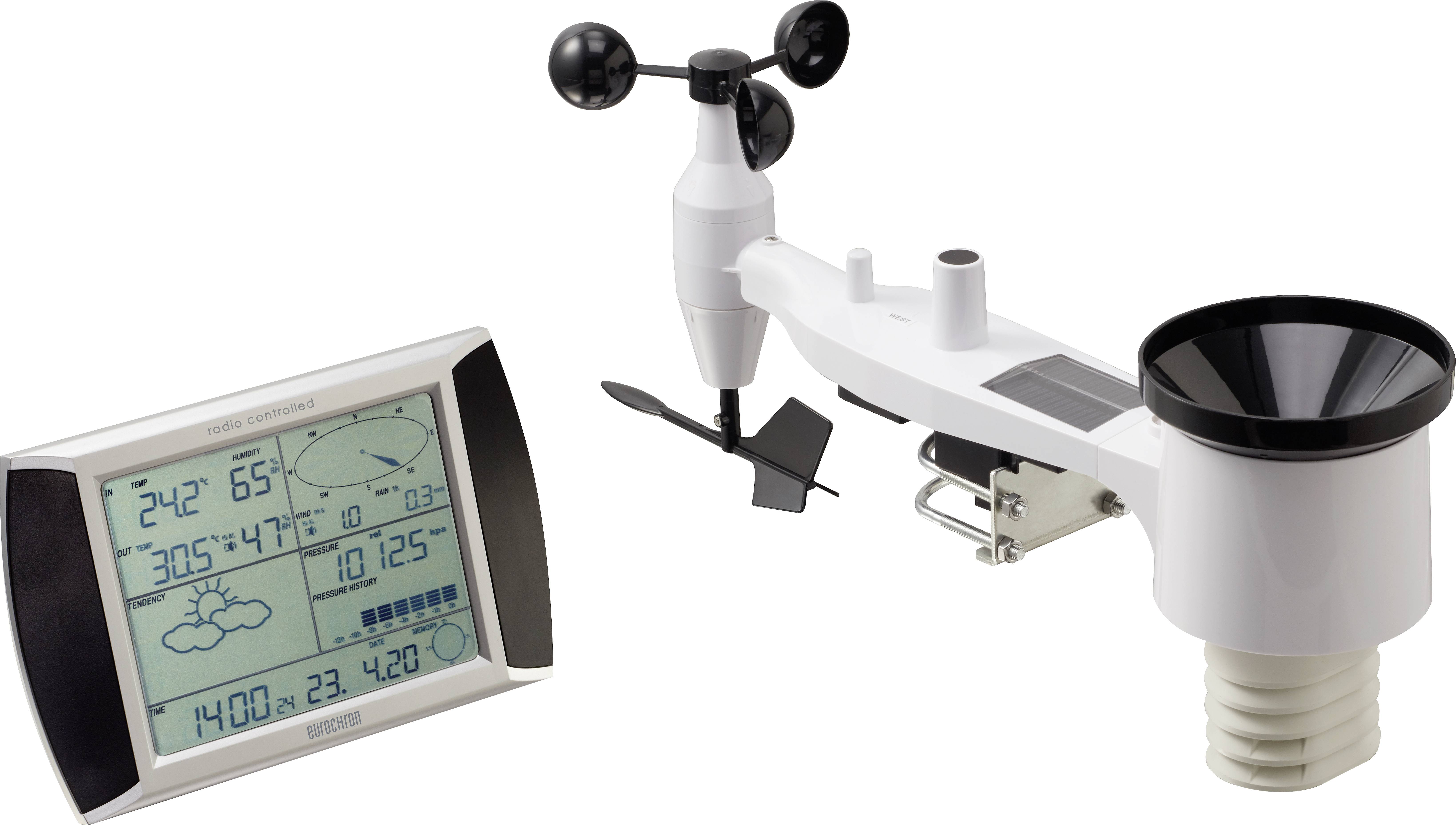 Lassen Sie sich die Werte Ihrer Innen-/Außentemperatur, der Innen-/Außenluftfeuchte, Regenmenge, Windgeschwindigkeit und Windrichtung anzeigen. Hierbei werden die Messdaten der Außensensoren drahtlos zur Wetterstation übertragen. Mit Hilfe eines internen Luftdrucksensor und der stetigen Aufzeichung der Luftdruckveränderungen errechnet die Wetterstation eine Wettervorhersage für die nächsten 12 - 24 Stunden. Die Vorhersage wird mit grafischen Symbolen im Display dargestellt. Alle Wetterdaten von der Basisstation und die Wetterdaten der Sensoren können mit vom Nutzer eingestellten Intervallen auf dem PC aufgenommen und hochgeladen werden.