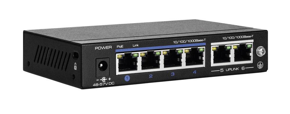 Der 4-Port PoE Gigabit Switch wurde speziell für die Anwendung in professionellen und hochauflösenden Videoüberwachungssystemen entwickelt und bietet 4 Gigabit Downlink PoE Ports und 2 Gigabit Uplink Ports.