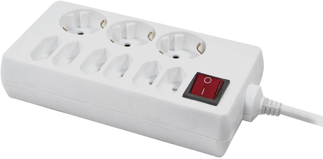 Steckdosenleiste mit 3 Schutzkontakt- & 6 Euro-Buchsen von LogiLink. Beleuchteter Ein- und Ausschalter. Buchsen Mit erhöhtem Berührungsschutz. Kabellänge 1,5 Meter.