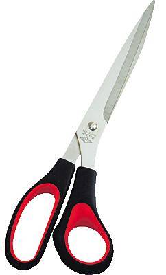 WEDO Universal-Papierschere, aus rostfreiem Edelstahl, poliert. Mit messerscharfer Schneide und leichtem Gang. Handgerecht geformter schwarzer Griff mit roten Soft-Einlagen.