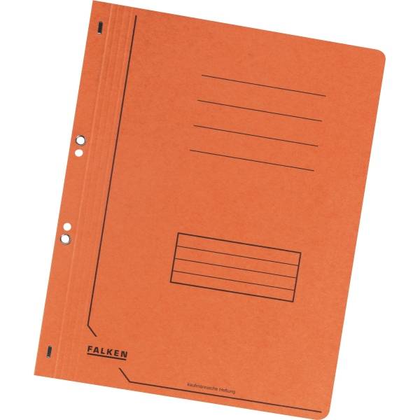 Ösenhefter, für DIN A4, voller Vorderdeckel, kaufm. und Behörden-Heftung, 250 g/qm Manila-RC-Karton, mit Organisationsdruck. Farbe: orange