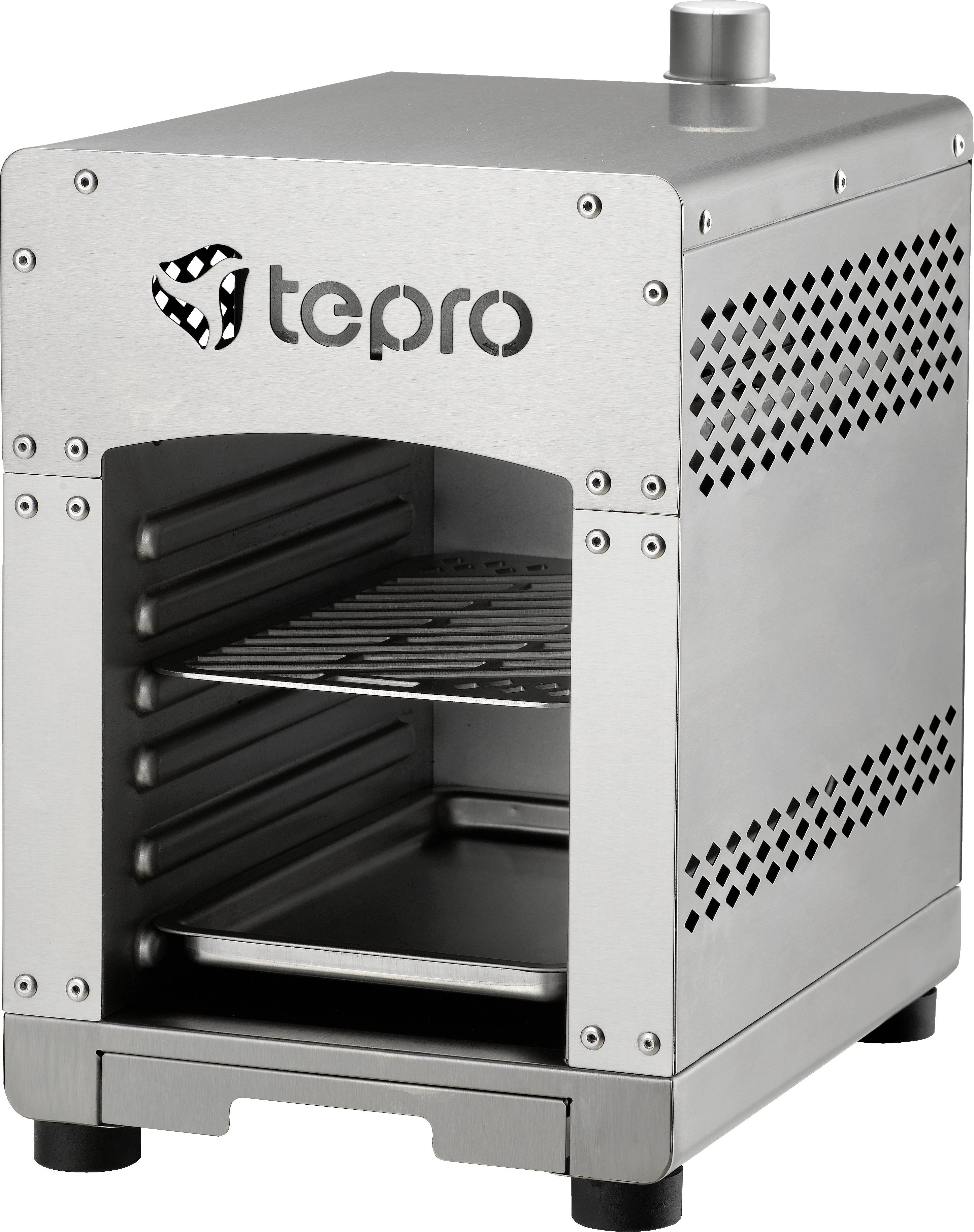 Das perfekte Steak Grillen – das gelingt mit dem Toronto Steakgrill kinderleicht. Der Oberhitze-Gasgrill von tepro ist ein Tool für jeden Grill-Perfektionisten und anspruchsvolle kulinarische Genießer. Mit einer konstanten Arbeitstemperatur von über 800 °C und dem praktischen und umfangreichen Zubehör grillt sich das perfekte Steak fast wie von alleine. Das rohe Fleisch wird für kurze Zeit direkt unter die Hitzequelle gelegt. Dabei karamellisiert das Fleisch und es entsteht eine leckere und knusprige Kruste. Nach dem scharfen Anbraten wird das Steak in die Grillschale gelegt und in den unteren kühleren Bereich des Grills geschoben. Dort zieht das Fleisch noch einige Minuten schonend nach. Um den gewünschten Garpunkt wie z. B. Well-Done, Medium oder Rare abzupassen, kann idealerweise ein Grillthermometer zur Hilfe genommen werden. Neben dem perfekten Steak gelingen mit den beiden mitgelieferten Grillrosten und Grillschalen auch weitere abwechslungsreiche Gerichte wie Pizza, Grillgemüse oder Fisch. Der kulinarischen Kreativität sind dabei keine Grenzen gesetzt. Nach dem Grillen ist der Grill-Innenraum dank seines intelligenten Fettablauf-Systems mit Fettschublade und den herausnehmbaren Grillrost-Schienen schnell und effizient gereinigt.