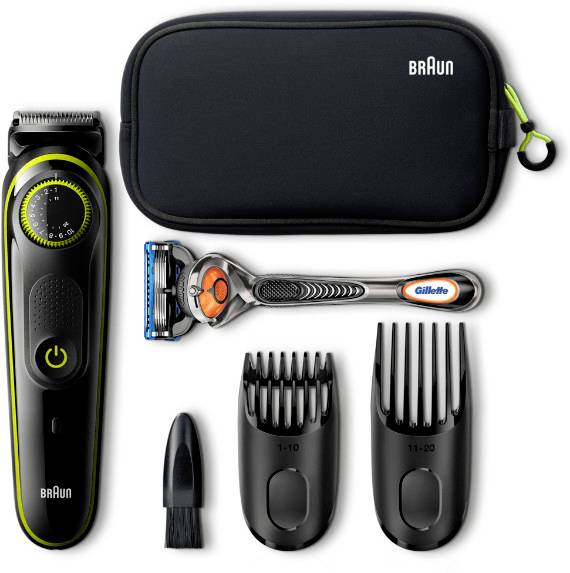 Probieren Sie verschiedene Bartstyles mit dem neuen wiederaufladbaren Braun Barttrimmer BT3041 für Männer. 39 Längeneinstellungen und lebenslang scharfe Klingen sorgen mit ultimativer Präzision für einen gleichmäßigen Schnitt. Vollständig abwaschbarer Barttrimmer/Haarschneider für Männer. Im Lieferumfang ist eine Kulturtasche und ein Gillette Fusion5 ProGlide Rasierer mit FlexBall-Technologie für Konturen oder eine glatte Rasur enthalten. Im Lieferumfang enthalten:1 x wiederaufladbarer Barttrimmer – BT39412 x Kammaufsätze mit 39 Längeneinstellungen (0,5 mm bis 20 mm)1 x Gratis Gillette Fusion ProGlide Rasierer mit FlexBall-Technologie für Konturen oder eine glatte Rasur.
