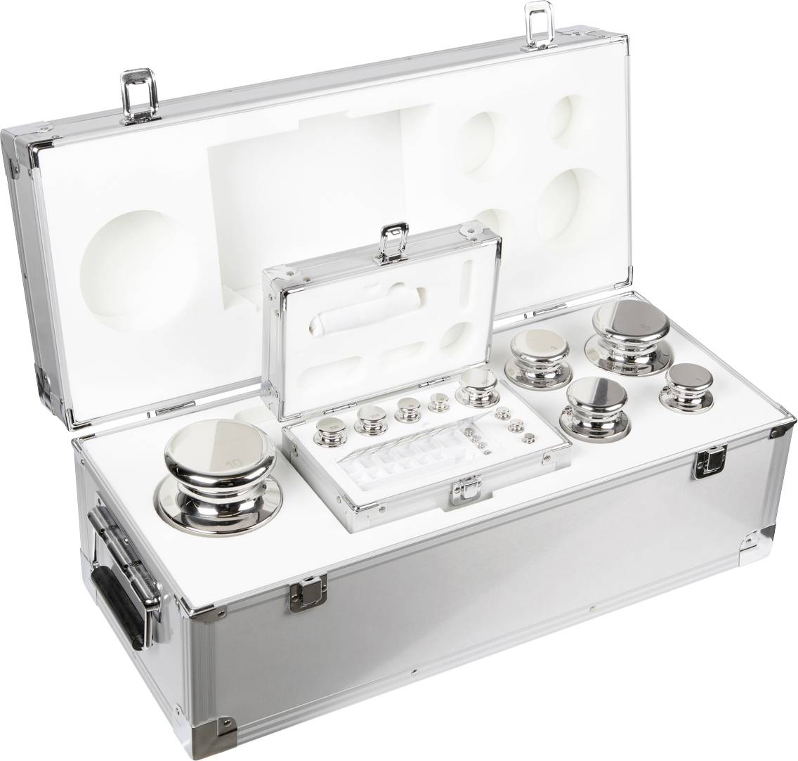 Gewichtssatz, ECO-Form, Edelstahl poliert, Aluminiumgeschützter Koffer